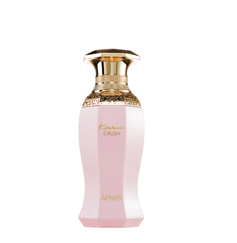 Afnan Kiaana Crush, introduced in 2024, opens with an intriguing touch of saffron that instantly captivates the senses. A rich blend of passionfruit, patchouli, and agarwood unfolds at the heart, creating a deep and sophisticated character. The fragrance settles into a warm, sensual base of Madagascar vanilla, ambroxan, musk, cedarwood, and incense, leaving a lasting and seductive trail.